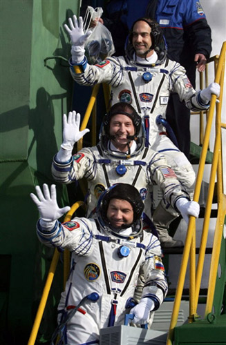 飛船搭載有三名乘客,包括俄羅斯宇航員、飛船指令長尤里•隆恰科夫,美國宇航員邁克•芬克,他們將在國際空間站工作六個月時間。隨同這兩名第十八長期考察組成員一同前往空間站的還有世界上第六位太空游客、美國電腦游戲開發(fā)商理查德•加里奧特,他為此次“太空游”支付了三千萬美元。加里奧特將按計劃在太空逗留十天,然后與第十七長期考察組的兩名成員在十月底一同返回地面。
