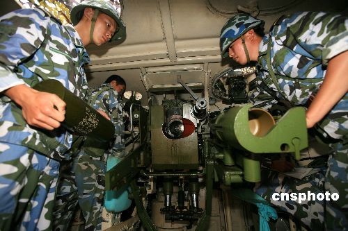10月13日,中國海軍陸戰(zhàn)隊某旅在某地域組織自行榴彈炮實彈射擊考核。圖為官兵正在裝填炮彈。 中新社發(fā) 李唐 攝