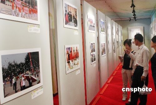 圖為大紅門發(fā)展成就圖片展吸引參觀者。中新社發(fā) 錢興強(qiáng) 攝