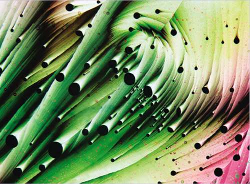 間苯二酚、亞甲基藍(lán)、硫磺的結(jié)晶混合物,約翰·哈特?cái)z,放大13倍。拍攝地點(diǎn):美國(guó)科羅拉多州伯爾德。所用技術(shù):透射偏振光。