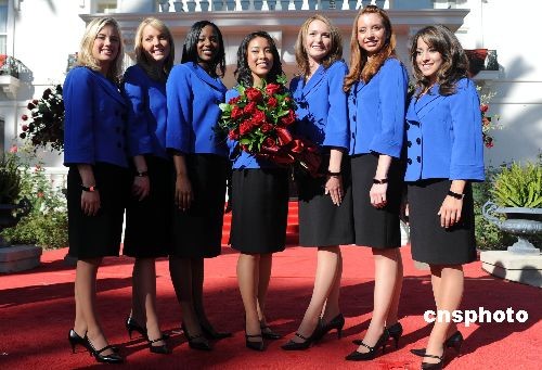十七歲的華裔高中生李君慧(中)十月二十一日當(dāng)選二00九年度美國“玫瑰皇后”,她將引領(lǐng)二00九年元旦舉行的第一百二十屆帕薩迪納玫瑰花車大游行和九十五屆“玫瑰碗”杯美式足球總決賽。中新社發(fā) 張煒 攝