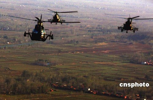 10月24日,中國(guó)人民解放軍濟(jì)南軍區(qū)參加“前鋒--2008”演習(xí)部隊(duì)在訓(xùn)練基地集結(jié)完畢,裝甲、陸航部隊(duì)進(jìn)入訓(xùn)練階段。這次演習(xí)以信息化條件聯(lián)合作戰(zhàn)為背景,進(jìn)行實(shí)兵、實(shí)彈演練,將有二百余名外國(guó)軍人、留學(xué)生參觀。據(jù)悉,這是中國(guó)軍隊(duì)首次大規(guī)模對(duì)外國(guó)留學(xué)生開(kāi)放軍事訓(xùn)練演習(xí)。中新社發(fā) 宋吉河 攝