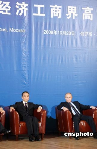 溫家寶與普京共同出席中俄經(jīng)濟工商界高峰論壇。中新社發(fā) 田冰 攝