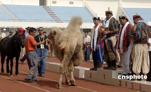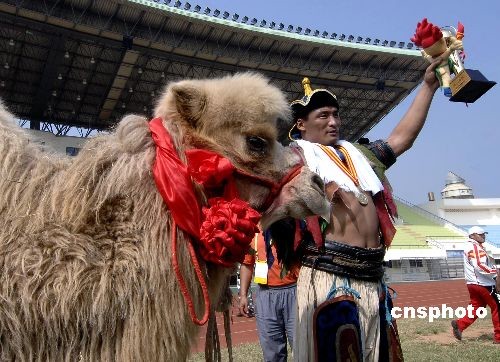 內(nèi)蒙古選手獲得冠軍并獎勵駱駝一頭。中新社發(fā) 王東明 攝