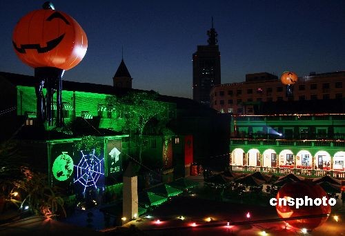 天津意式風(fēng)情區(qū)充滿了萬(wàn)圣節(jié)的氣氛。中新社發(fā) 李歲豐 攝