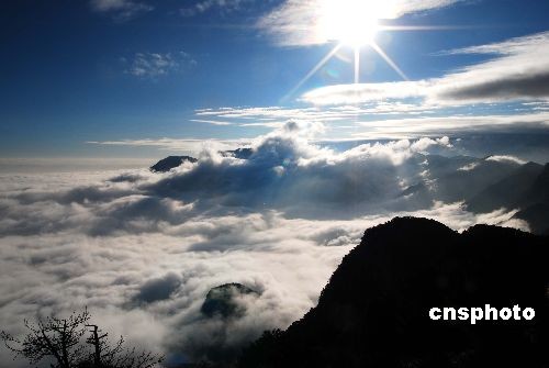 圖為四日廬山老峰上出現(xiàn)的蔚為壯觀的云海。出現(xiàn)的蔚為壯觀的云海。