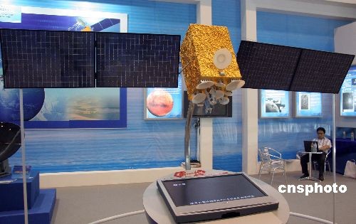 圖為中國航天科技集團公司研制的新一代寬帶多媒體通信衛(wèi)星模型在珠海航展上展出。中新社發(fā) 孫自法 攝