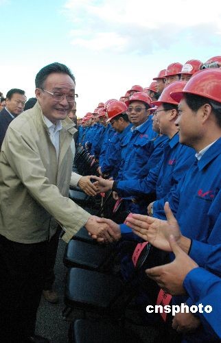 當(dāng)?shù)貢r(shí)間五日下午,正在阿爾及利亞進(jìn)行正式友好訪問的中國全國人大常委會(huì)委員長吳邦國視察了由中信集團(tuán)和中國鐵建聯(lián)合體承建的東西高速公路項(xiàng)目工地,看望了在那里工作的工程技術(shù)人員,要求確保工程質(zhì)量,做出信譽(yù)、創(chuàng)出品牌,把東西高速公路項(xiàng)目建設(shè)成世界一流工程。中新社發(fā) 孫宇挺 攝