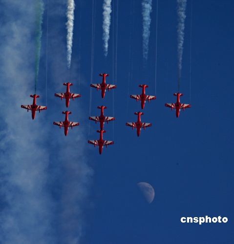 11月6日,印度空軍“陽光”飛行表演隊的9架飛機在第七屆珠海“航展”上為觀眾作了數(shù)十個飛行科目表演。中新社發(fā) 譚超 攝