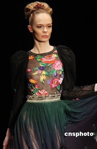 圖:國際時裝周模特展現(xiàn)"似水柔情"(2)