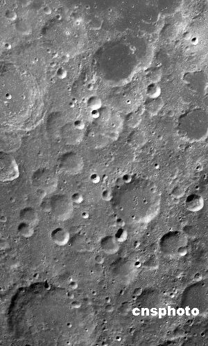 圖為2007年12月11日,中國國家航天局發(fā)布的由“嫦娥一號”衛(wèi)星11月26日獲取的6軌立體相機數(shù)據(jù)拼接而成的“嫦娥撞擊坑”。