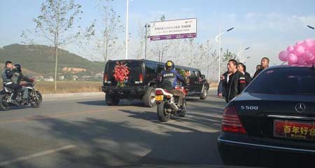 加長悍馬頭車后面是新款千禧奔100輛。