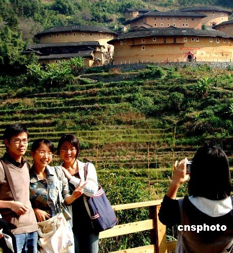 11月19日,來自外地的游客慕名來到漳州南靖縣田螺坑土樓群前流連忘返。自二00八月七月福建土樓被列入《世界文化遺產名錄》至今,到漳州南靖縣旅游觀光的中外游客已達逾46 萬人次,創(chuàng)旅游收入12980萬元人民幣。