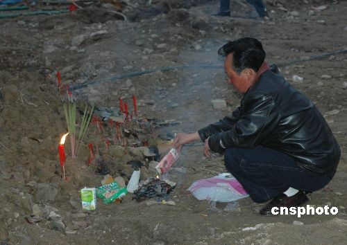 在四川雅江縣務工的楊先生,每月都會到北川中學的廢墟前祭奠在“512”大地震遇難的女兒。圖為11月21日,楊先生星夜兼程從雅江趕赴北川,為17歲的女兒燒去思念。中新社發(fā) 肖龍聯(lián) 攝