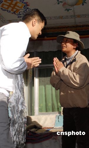 11月28日下午,王菲、李亞鵬來(lái)到拉薩城關(guān)區(qū)當(dāng)巴居委會(huì),看望一歲的唇腭裂患兒小央金,并為小央金送去慰問(wèn)金和禮物。首次做客藏家的王菲、李亞鵬夫婦顯得很愉快。中新社發(fā) 龍昊 攝