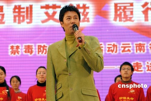 圖:著名歌手蔡國慶在大學(xué)宣傳禁毒防艾