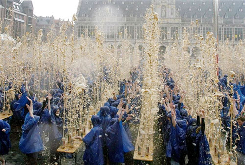 最壯觀的噴泉——4月24日,在比利時城市魯文,1500名學生創(chuàng)造了世界上最壯觀的“沸騰可樂”奇觀——1500瓶可樂同時噴發(fā)。
