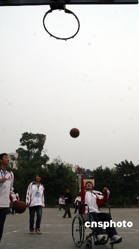 圖為輪椅投籃比賽現(xiàn)場(chǎng)。