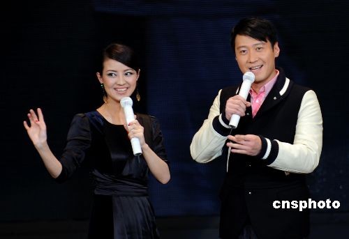 12月2日晚,陳凱歌執(zhí)導的電影《梅蘭芳》在北京中影懷柔影視基地舉行首映禮,黎明跟主持人調(diào)侃時大秀蘭花指。黎明在劇中扮演梅蘭芳。中新社發(fā) 廖攀 攝