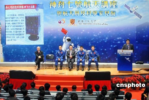 十二月六日,“神舟七號”載人航天飛行代表團(tuán)來到香港中文大學(xué),與學(xué)生進(jìn)行交流。