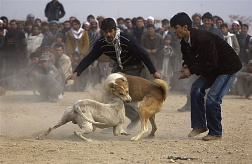 近日,阿富汗舉行了斗狗比賽,數(shù)千名當(dāng)?shù)厝司奂诳Σ紶柦纪庥^看該項(xiàng)比賽。