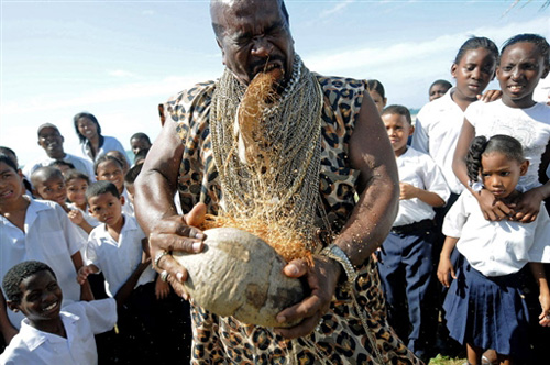 近日,60歲的安德烈斯-噶爾丁(Andres Gardin)在巴拿馬科隆市表演用牙剝椰子、和用牙拖拽汽車(chē)的絕技。