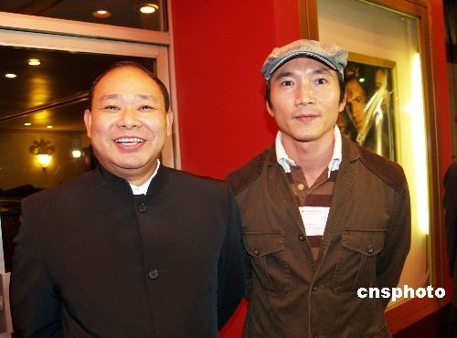 圖為左起張倫導(dǎo)演與好萊塢武打明星鄒兆龍?jiān)谑子呈缴稀V行律绨l(fā) 盧威 攝