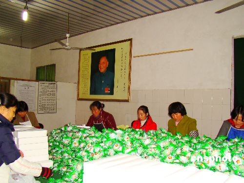 圖為村民蔣超經(jīng)歷了改革開放從無(wú)到有的整個(gè)時(shí)代變遷,依靠經(jīng)驗(yàn)和技術(shù)發(fā)展起了“鄧家鹽皮蛋”加工廠,工人正在包裝鹽皮蛋。