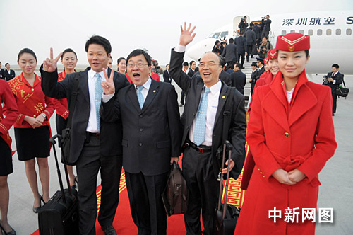 臺灣旅客乘坐深航班機(jī)開心回家。