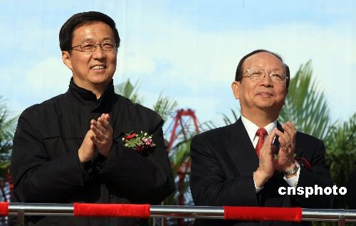 12月15日,上海市市長韓正(左)與國民黨副主席蔣孝嚴(yán)(右)在洋山港出席兩岸海上直接通航首航儀式。當(dāng)日,海峽兩岸海上、空中直航及直接通郵在兩岸同步啟動。