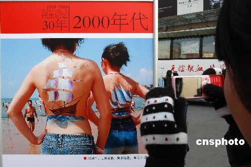 12月16日,紀念改革開放30周年全國攝影大展在北京王府井大街開幕。本次展覽由“民生記憶30年”、“城鎮(zhèn)記憶30年”、“家庭記憶30年”3部分組成,共展出攝影作品近800幅。其中“民生記憶30年”部分將中國自1978年以來的30年變革脈絡(luò),用百姓的視角、平凡的瞬間加以詮釋與展現(xiàn),還原質(zhì)樸的生活。中新社發(fā) 鄭雄增 攝