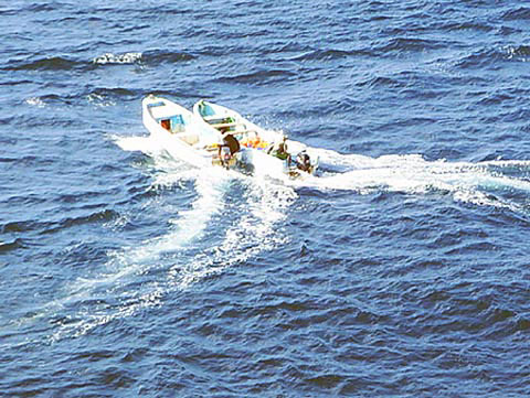 12月17日早上當?shù)貢r間8時。亞丁灣。2艘白色小艇向“振華4號”整機運輸船駛來,在賊艇距離“振華4號”大約4海里處,船長彭維源果斷拉響了全船警報!