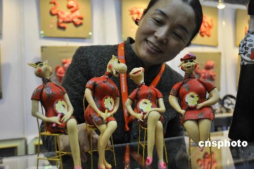 12月18日,第三屆中國北京國際文化創(chuàng)意產(chǎn)業(yè)博覽會在中國國際展覽中心開幕。圖為由純手工法軟陶教育創(chuàng)始人趙春香創(chuàng)作的生肖作品。中新社發(fā) 潘旭臨 攝