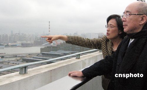 十二月二十一日,正在上海參加第四屆兩岸經(jīng)貿(mào)文化論壇的中國國民黨主席吳伯雄造訪上海世博局,登高俯瞰2010年上海世博會(huì)園區(qū)工地。中新社發(fā) 許曉青 攝