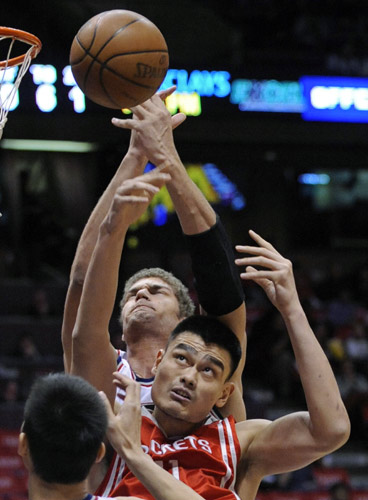 姚明打了35分鐘,拿下24分、16個籃板和4個蓋帽。