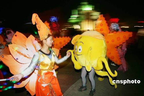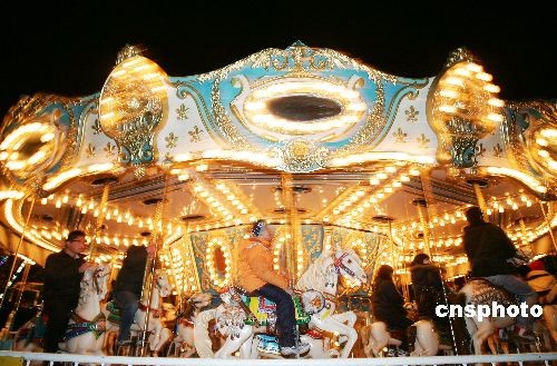 12月24日晚,是西方傳統(tǒng)節(jié)日圣誕節(jié)的平安夜,在山東濰坊市區(qū)富華游樂園內(nèi),熊熊的篝火、歡快音樂、色彩艷麗的花車使人完全沉浸在了節(jié)日歡樂的海洋之中。中新社發(fā) 張馳 攝