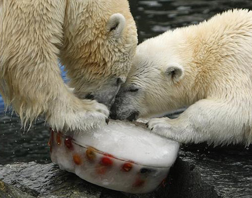 正在吃生日蛋糕的兩只北極熊,也參與了“最貪吃”的競爭。