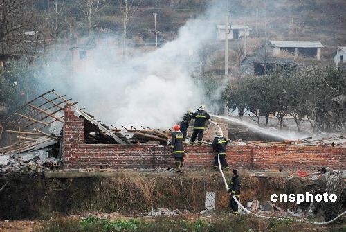 冷水江市消防官兵正在清理爆炸現(xiàn)場。中新社發(fā) 余致力 攝