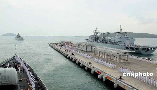 圖為中國人民解放軍海軍艦艇編隊陸續(xù)駛離碼頭。中新社發(fā) 孫自法 攝