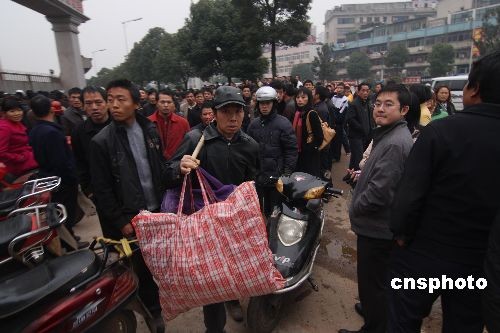 一民工拿行李回家。 中新社發(fā) 郭國權(quán) 攝