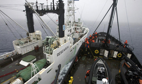 圖:日本捕鯨船遭環(huán)保者“臭彈”襲擊(2)