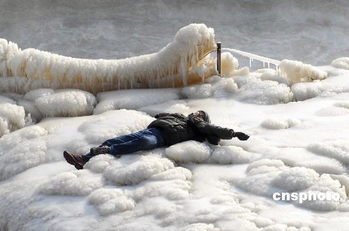12月28日,游客們?cè)谟^賞冬日壺口瀑布冰封景觀。由于連日來(lái)的急劇降溫,地跨晉陜兩省的黃河壺口瀑布因上游冰凌的不斷涌入,使壺口瀑布形成“冰橋”,瀑布飛濺的水珠冰凍形成了各種各樣奇特的冰掛,吸引了眾多游客和攝影愛(ài)好者。