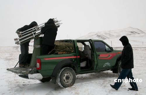 12月27日,新疆哈密人工增雪工作人員在調(diào)試人工增雪火箭彈發(fā)射架。中新社發(fā) 蔡增樂 攝