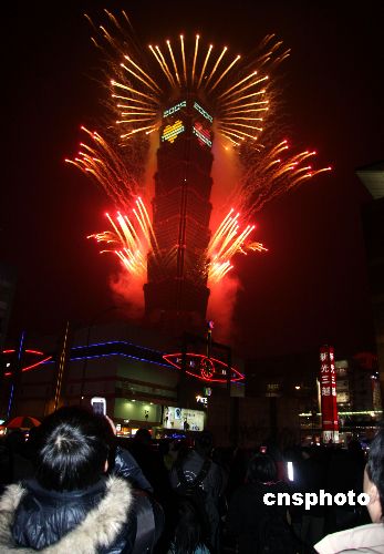 臺北:一月一日凌晨,臺北市在一0一大樓施放煙火,迎接2009年元旦的到來,吸引了大批市民觀看。 中新社發(fā) 陳立宇 攝