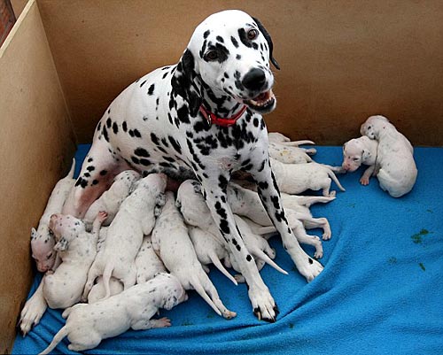 圖:英國斑點(diǎn)狗一次產(chǎn)下18只小狗