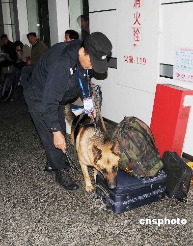 圖:廣州火車站搜爆犬上崗保春運(yùn)(2)