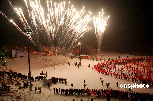 1月11日晚,銀裝素裹、晶瑩秀麗的沈陽棋盤山冰雪大世界歡聲雷動,“2009中國沈陽國際冰雪節(jié)、盛京燈會、關東廟會”拉開帷幕,這一冬日盛會為期35天。中新社發(fā) 黃金昆 攝
