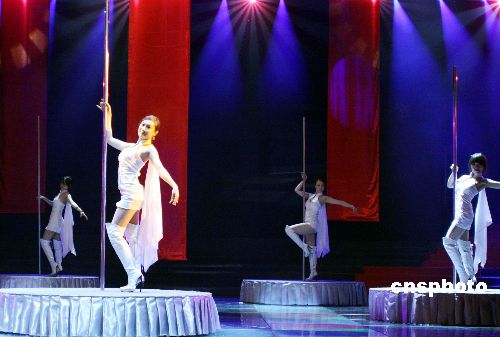 1月13日日晚,中國鋼管舞創(chuàng)始人羅蘭率團(tuán)隊在廣西電視臺錄制“新春熱舞”晚會節(jié)目,這是中國鋼管舞首次亮相地方電視臺春節(jié)晚會。中新社發(fā) 曾德軍 攝