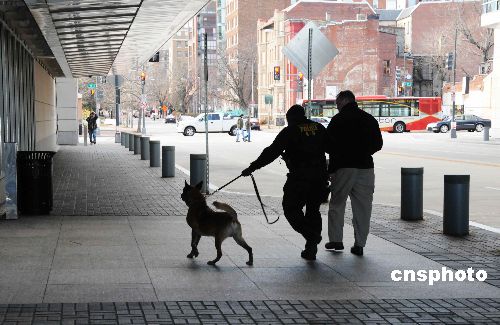 當(dāng)選為美國第四十四任總統(tǒng)的奧巴馬,將于三天后進(jìn)駐白宮。由于情報(bào)顯示安全形勢嚴(yán)峻,美國負(fù)責(zé)保衛(wèi)總統(tǒng)安全的美國K-9特種警察加緊在該區(qū)域內(nèi)嚴(yán)格戒嚴(yán),四處搜尋,力爭新總統(tǒng)就職平安。圖為美國K-9特種警察在白宮附近街道巡邏。