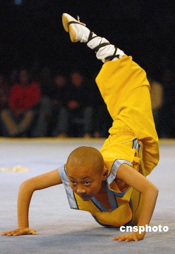 圖為少林小弟子表演一種新的拳路—少林象形拳之蝎子拳。中新社發(fā) 劉冉陽 攝